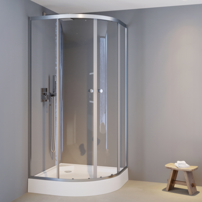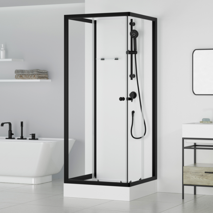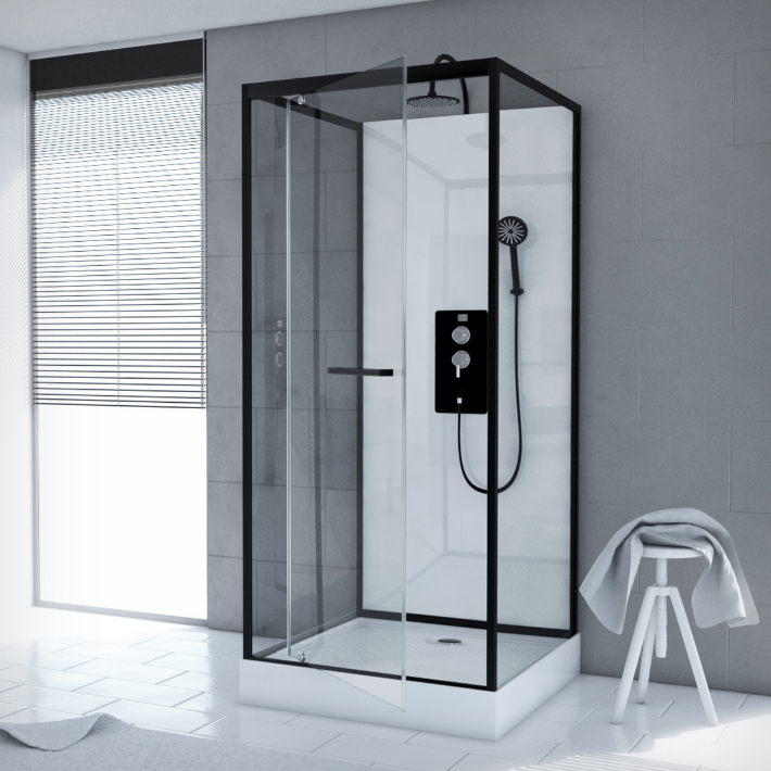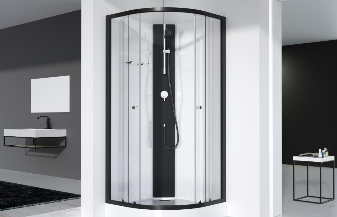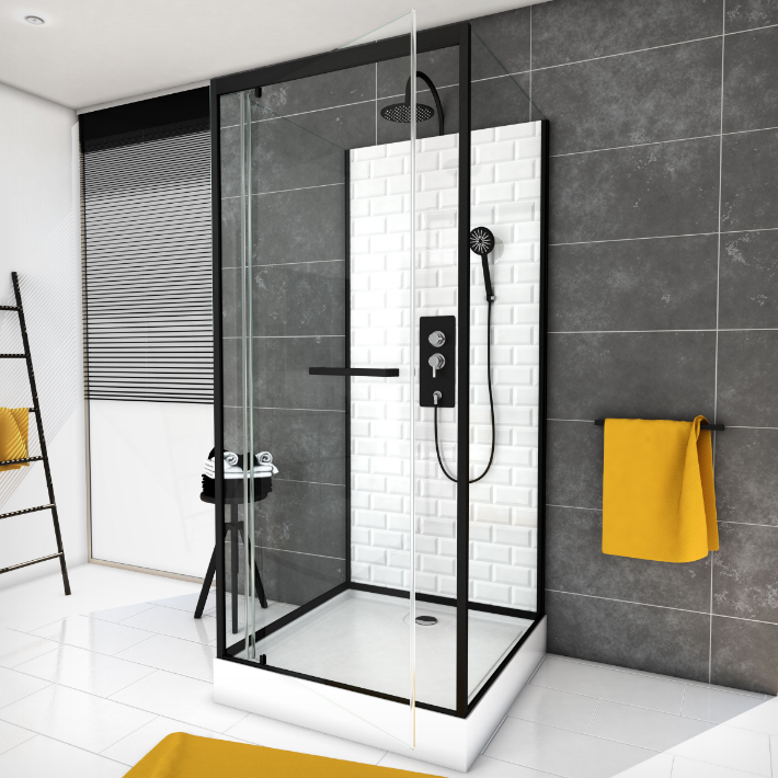 Bei unserem Komplett Duschsystem ist alles inklusive! Duschwanne, Glaswände, Türen aus Glas, Armaturen, Ablagen, Hand- und Kopfbrause sind perfekt aufeinander abgestimmt und lassen sich schnell und einfach aufbauen. Das perfekte DIY  Produkt.